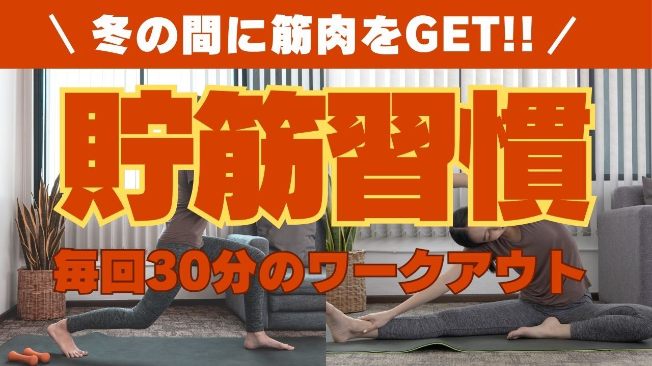 貯筋習慣とは毎回30分筋肉に特化したからだのワークアウトを行います。冬の間に脚や体幹の筋肉を鍛えていきましょう!!